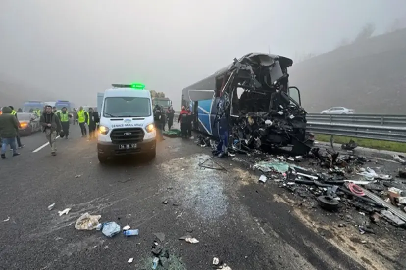 Kaza, saat 04.30 sıralarında Kuzey Marmara Otoyolu'nun Sakarya Dağdibi mevkisinde meydana geldi. Sol şeritte yavaşlayan kamyonete, arkasından gelen yolcu otobüsü çarptı. Araçlar, yolun sol şeridinde kaza nedeniyle durdu, otobüsteki yolculardan bazıları da yola indi. Sis nedeniyle görüş mesafesinin düştüğü yolda, arkadan gelen, aralarında 2 yolcu otobüsü ve 1 TIR'ın da olduğu 5 araç daha kazaya karıştı. Araçlar, kaza nedeniyle otobüsten inen yolculara da çarptı. İhbar üzerine bölgeye çok sayıda itfaiye, 112 acil sağlık, polis ve jandarma ekibi sevk edildi. Kaza nedeniyle otoyolun İstanbul yönü ulaşıma kapatıldı.