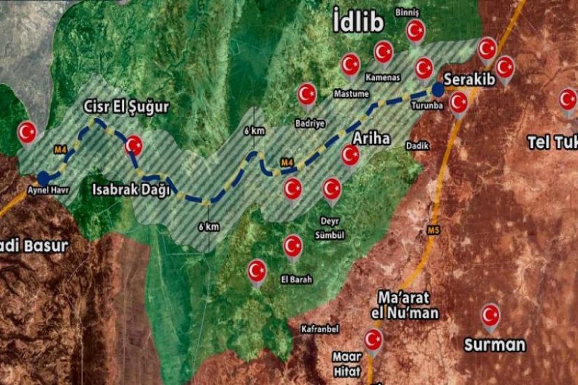MEVZİ BÖLGELERDE KAYDIRMALAR: Mutabakatın getirdiği en önemli mekanizma, Serakib’den batıya, Lazkiye’ye doğru kuş uçuşu 55 kilometre kadar uzanan M-4 otoyolu üzerinde kurulacak ‘güvenli koridor’dur. Bu koridor, otoyolun her iki tarafında da 6 kilometrelik bir derinliğe yayılacaktır. Çok net ifade edilmese de, muhtemelen toplam 12 kilometrelik derinlik içinde kalan ağır silahların hattın gerisine çekileceğini tahmin edebiliriz. TSK, şubat ayı boyunca M-4’ün hem kuzeyinde hem de çok yakın zamanda güneyinde bazı geçici mevzi bölgeler kurmuştu. Yapılacak çalışmalar sonucunda bunların bir bölümünün yer değiştirmesi, bazı kaydırmaların yapılması şaşırtıcı olmaz.