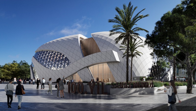 “Gaziemir’de cumhuriyetimizin temel taşlarını güçlendirmek için kültür ve sanat faaliyetlerine önem veriyoruz. 100 yıllık cumhuriyetimizin adını taşıyacak sembol bir sanat merkezi inşa edeceğiz” diyen Belediye Başkanı Halil Arda, “Yakın zamanda, İzmir’in belki de sembol binalarından birini şehrimize kazandıracağız. Gaziemir kültürle sanatla büyüyen bir ilçe. Bu misyonun en önemli parçalarından biri de bu sanat merkezi olacak. Merkezimiz, uçaktan bakanların meraklanacağı, şehre girerken insanların gözünü alamayacağı, akışkan mimari formu ile çağı yakalayacak ancak yerel motiflerin de içinde işlendiği özel bir tarzda tasarlandı. ODTÜ mezunu iki genç mimar ile bu tesisin mimarisi için çalıştık. Genç ve yetenekli mimar arkadaşlarımız, zihnimizden geçenleri birebir uyguladılar ve ortaya bu muazzam yapı çıktı” diye konuştu.