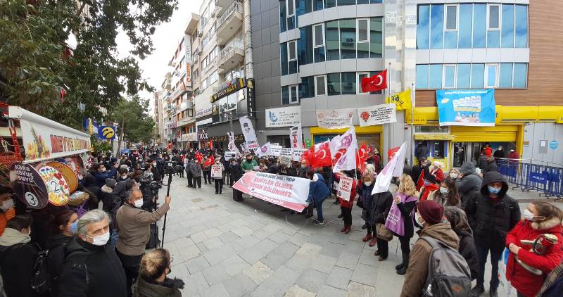 HDP’nin kapatılması vurgusunu yapan bir diğer isim de Vatan Partisi İzmir İl Sekreteri Levent Özciğer oldu. Özciğer, “Buradan tüm siyasi partilere sesleniyoruz, Cumhuriyet Başsavcılığı’na sesleniyoruz, PKK’yı hendeklere gömüyoruzi dağlara taşlara gömüyoruz ama onun siyasi ayağını neden meclisten atmıyoruz? Biz mecliste terörist istemiyoruz. anayasanın 100. maddesinin işletilmesinin, HDP’nin mutlaka kapatılmasını istiyoruz. Bu çığlığımıza kimsenin sessiz kalmaması gerekir” dedi.