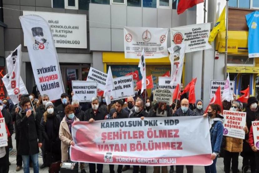 Karşıyaka İZBAN önünde düzenlenen anma töreninde konuşma yapan Türkiye Gençlik Birliği İzmir İl Başkanı Mustafa Gökmen, “PKK’nın temizlenmesi ancak tüm alanlarda mücadele edilerek mümkün olacaktır. Türk Ordusunun PKK’yı ezmesi, PKK’nın siyasi kolu HDP’nin kapatılması ile desteklenmelidir. Annelerin elinde çoçuklarını alıp dağa kaçıran, belediyeler ile ülkemizin altına bombalar döşeyen terör partisi HDP’nin PKK ile olan bağlantısı su götürmez bir gerçektir. Buna rağmen HDP ile siyasi ortaklık kuranlar büyük bir gaflet içerisindedirler. HDP ile iktidar olma planları yapanlar ancak ve ancak ABD’de Türkiye’deki piyonlarından başka bir konuma gelemezler. PKK’nın siyasi uzantısı HDP’ye, Onları dost olarak görüp iktidar olma matematikleri yapanlara, Terörist Selahattin Demirtaş’a özgürlük isteyenlere sesleniyoruz. “Avucunuzu Yalarsınız!” diyerek terörle mücadelede kesin çözümün HDP’nin kapatılması olduğunu vurguladı.