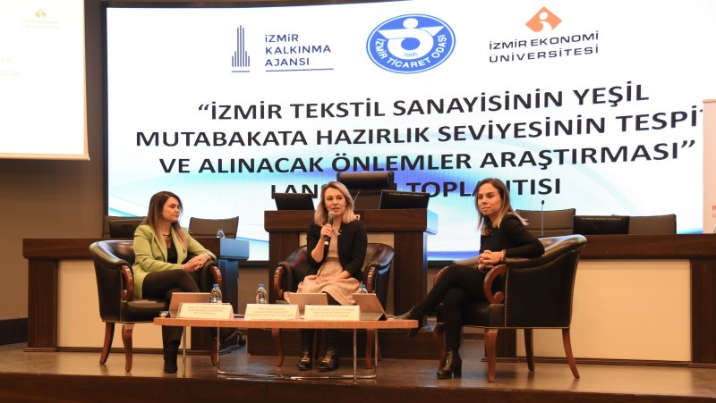 İzmir Ticaret Odası (İZTO), İzmir Kalkınma Ajansı (İZKA) ve İzmir Ekonomi Üniversitesi (İEÜ), tekstil sektöründe faaliyet gösteren firmalara ‘Yeşil Mutabakat’ sürecinde yol gösterecek örnek bir çalışmaya imza attı. Şirketlerin temel ihtiyaçlarının ne olduğu, hangi stratejik adımları atmaları gerektiği ve yeşil dönüşümün firmaları nasıl etkileyeceği gibi birçok konuda, anket ve odak grup çalışmaları aracılığıyla analizler yapıldı. Elde edilen tüm veriler de ‘İzmir sanayisinin Yeşil Mutabakat’a hazırlık seviyesinin tespiti ve alınacak önlemler araştırması’ adlı rapor ile sektör temsilcileriyle paylaşıldı.