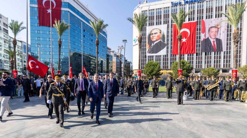 30 Ağustos Zafer Bayramı kutlamaları Cumhuriyet Meydanı'ndaki resmi törenle başladı. Törene İzmir Büyükşehir Belediye Başkanı Dr. Cemil Tugay, Ege Ordusu ve Garnizon Komutanı Orgeneral İrfan Özsert, İzmir Valisi Dr. Süleyman Elban, CHP Genel Başkan Yardımcısı ve Parti Sözcüsü İzmir Milletvekili Deniz Yücel, CHP İzmir Milletvekili Ednan Arslan, MHP İzmir Milletvekili Tamer Osmanağaoğlu, İYİ Parti İzmir Milletvekili Hüsmen Kırkpınar ile sivil toplum örgütlerinin temsilcileri, üniversite rektörleri katıldı. Tören, Cumhuriyet Meydanı’nda bulunan Atatürk Anıtı'na çelenk sunulması ve saygı duruşundan sonra İstiklal Marşı'nın okunmasıyla devam etti.