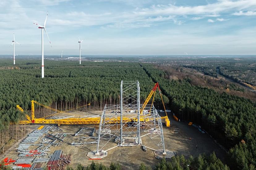 Dev bir vinç konumunu almış durumda, çelik kirişler birleştiriliyor ve kafes yapılı bir direk yavaş yavaş gökyüzüne yükseliyor. Her şey planlandığı gibi giderse, dünyanın en yüksek rüzgâr türbini burada, Brandenburg eyaletindeki küçük Schipkau kasabasında inşa edilecek.