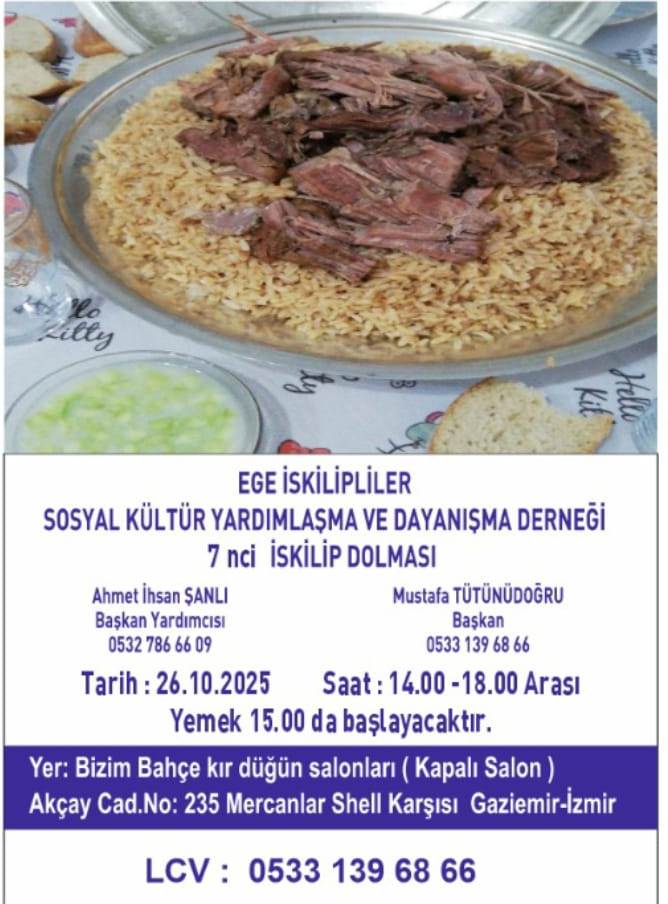 İskilip Dolması, Osmanlı İmparatorluğu döneminden günümüze kadar gelen ve Türk mutfağının zengin tarihini yansıtan bir yemek.Yaklaşık 600 yıllık bir geçmişe sahip olan ve Osmanlı mutfağında önemli bir yere sahip olan ve bugün hala Anadolu coğrafyasının en önemli ritüel yemeklerinden biri olan İskilip Dolması İlk kez İzmirli lezzet severlerle buluşacak.