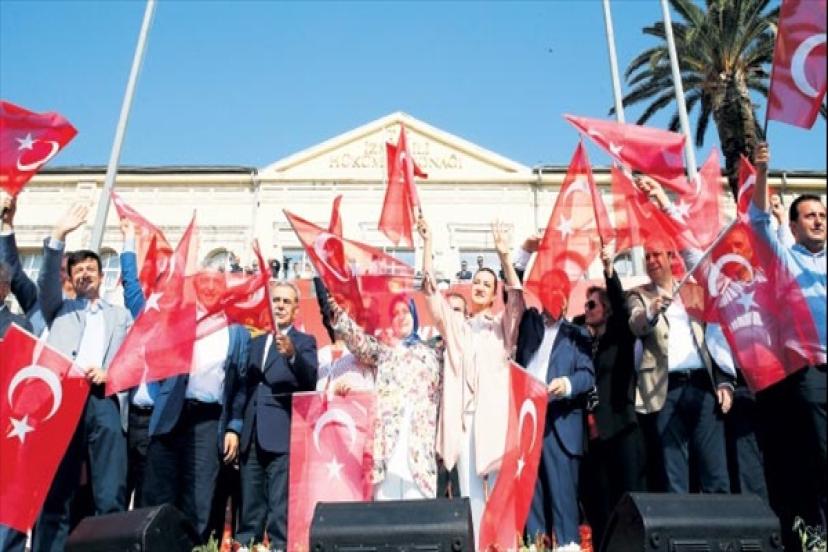 İZMİR: Ulaştırma, Denizcilik ve Haberleşme Bakanı Ahmet Arslan, eski Kültür ve Turizm Bakanı Mahir Ünal, Ak Parti Genel Başkan Yardımcısı Nükhet Hotar, İzmir Büyükşehir Belediye Başkanı Aziz Kocaoğlu, CHP İzmir Milletvekili Ali Yiğit, Ak Parti İzmir milletvekilleri, CHP İzmir İl Başkanı Alaatin Yüksel, Ak Parti İzmir İl Başkanı Bülent Delican, Vatan Partisi İzmir İl Başkanı Rıfat Mutlu Konak Meydanı’nı dolduran yüzlerce İzmirli’yi ellerindeki Türk bayraklarını sallayarak selamladı. Ak Partili Delican ile CHP’li Yüksel’in el ele vererek İzmirliler’i selamlaması büyük alkış aldı. Alanda her biri 16 metrekare genişliğnideki 4 LED ekrandan yenikapı mitingi canlı yayında izlendi. Ak Parti İzmir İl Başkanı Delican, CHP Genel Başkanı Kemal Kılıçdaroğlu, canlı yayında konuşurken alanı doldudan İzmirlilere “Kılıçdaroğlu’nu daha fazla alkışlayın. Bugün birlik beraberlik günü” dedi.