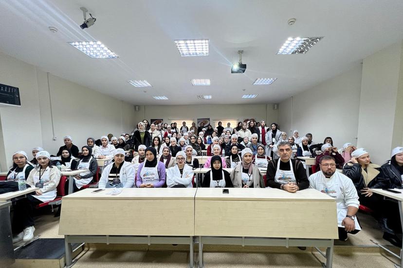 Etkinlik kapsamında Arş. Gör. Mustafa Kemal Kök, "Gaziantep Mutfak Kültürü" başlıklı sunumunda, kentin köklü mutfak mirası, sofra adabı ve coğrafi işaretli ürünleri hakkında katılımcılara bilgi verdi.