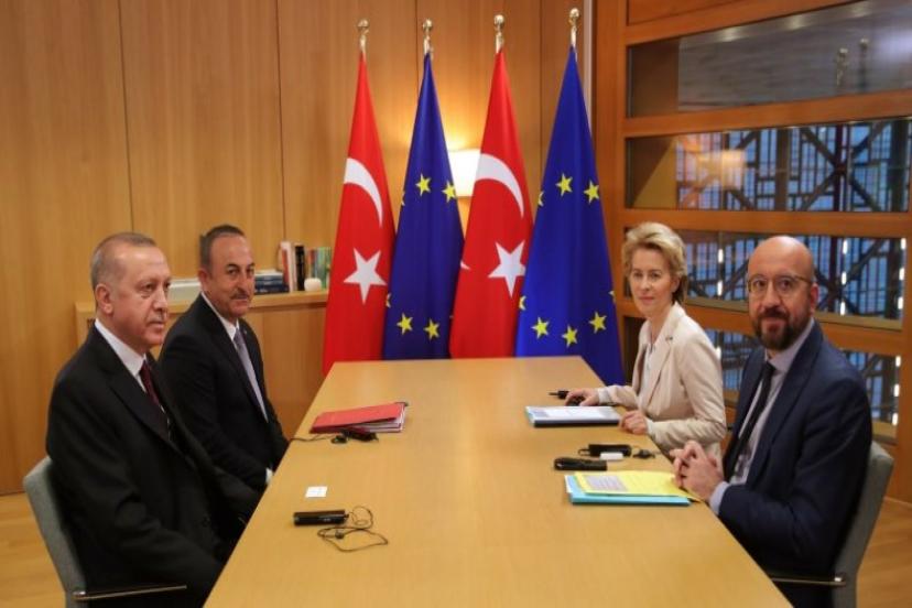 Erdoğan AB'yi; yeterli sayıda mülteci almamakla, Türkiye'ye mültecilere barındırması için yeterli maddi yardımda bulunmamakla ve Ankara ile Brüksel arasında 2016'da varılan anlaşmaya uymamakla suçladı ve görüşmeyi aniden terk etti.Gazetedeki haberde Erdoğan'ın AB'den, Türkiye'ye 6 milyar euro yardım da öngören anlaşmanı yenilenmesi ve Ankara'ya daha fazla maddi yardımda bulunulmasını istediği belirtildi.