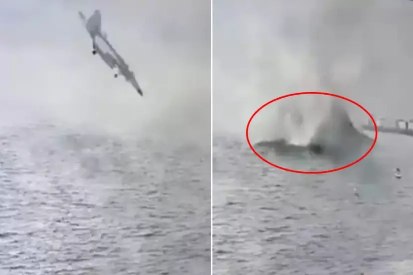 San Diego şehrinde ABD donanmasına ait bir savaş uçağı denize düştü. Kaza anı kameraya saniye saniye yansırken görüntülerde uçağın oldukça hızlı bir şekilde denize daldığı görülüyor.