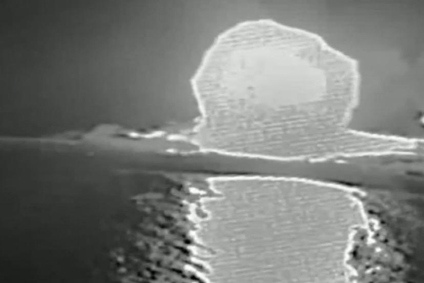 Açıklamada, "İki gün önce İran rejiminin Umman Körfezi'nde 11 gemisi vardı, bugün ise sıfır gemisi var" ifadesi kullanılırken paylaşılan siyah-beyaz videoda bir gemiye füze isabet ettikten sonra göğe alevlerin yükseldiği görüldü.