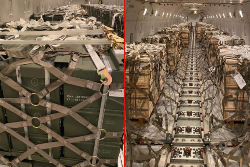 Abd'nin Kiev'e yaptığı binlerce tonluk yardıma ilişkin görüntüler sosyal medyada da büyük ses getirirken, fotoğraflarda kargo uçağına yerleştirilmiş onlarca silah ve mühimmat yer aldı.