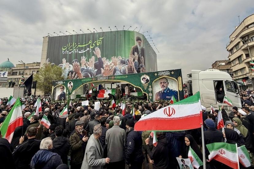 Öldürülen İranlı komutanların cenaze töreni için İnkılap Meydanı’nda buluşan on binlerce kişi, ABD ve İsrail karşıtı sloganlar attı.
