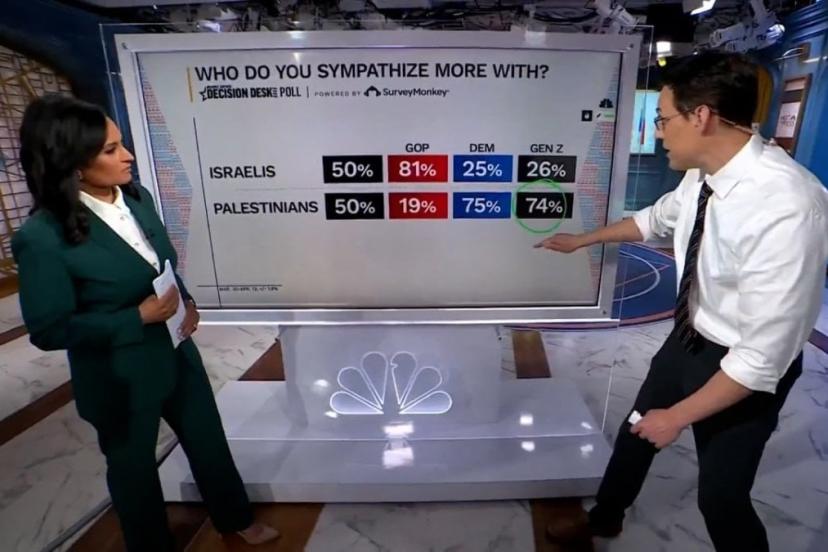 Amerikan merkezli televizyon kanalı NBC’de yayımlanan bir ankete göre, ABD’li Z kuşağının yüzde 74’ü İsrail yerine Filistin’e sempati duyuyor.