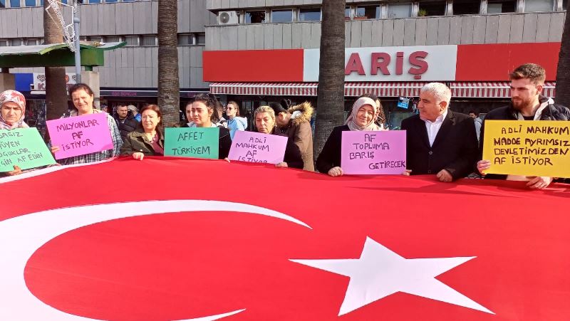 İzmir'de bir araya gelen Adil Yaşam Derneği Üyeleri yaptıkları basın açıklamasında, af talebinde bulundular.