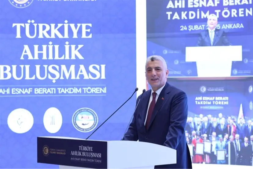 Türkiye Ahilik Buluşması-Ahi Esnaf Beratı Takdim Töreni", Cumhurbaşkanı Yardımcısı Cevdet Yılmaz'ın da katılımıyla Ticaret Bakanlığı Konferans Salonu'nda yapıldı.