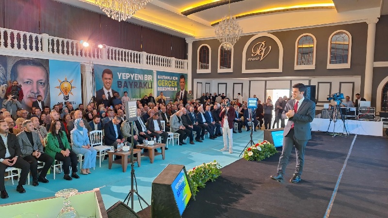 AK Parti Bayraklı İlçe Başkanı Tarkan Düzman, "2019'da Cumhurbaşkanımızın tensipleriyle Bayraklı ilçe oldu. İlk seçimimizi yaptık, 3 dönem diğer parti tarafından Bayraklı yönetildi ama ilçemizin her sokağında keşmekeşlik devam ediyor. Bu defa sizlerin destekleriyle Allah nasip ederse Bayraklı belediyesi, Adayımız Bilal Kırkpınar öncülüğünde Bayraklı Cumhur İttifakı belediyeciliğiyle tanışacak. Bütün eksiklikleri gidereceğiz, Bayraklı yepyeni bir Bayraklı olacak" dedi.