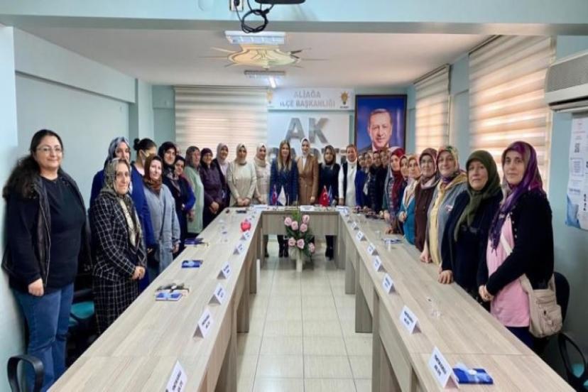 AK Parti İzmir İl Kadın Kolları Başkanı Dilek Büyükdağ, beraberindeki birim başkanları ile geldiği Aliağa'da, partisinin İlçe Başkanlığını ziyaret etti. Burada İlçe Kadın Kolları Başkanı Şule Akman Yıldırım, yönetimi ve mahalle başkanları ile bir araya gelen Büyükdağ, 2023'te yapılacak Cumhurbaşkanlığı ve Milletvekili Genel Seçimlerinin önemini vurguladı. AK Parti ile kadınların siyasal temsillerinin arttığını vurgulayan Büyükdağ, Cumhurbaşkanı Recep Tayyip Erdoğan'ın kadına siyasette en çok değer veren lider olduğunu kaydetti.
