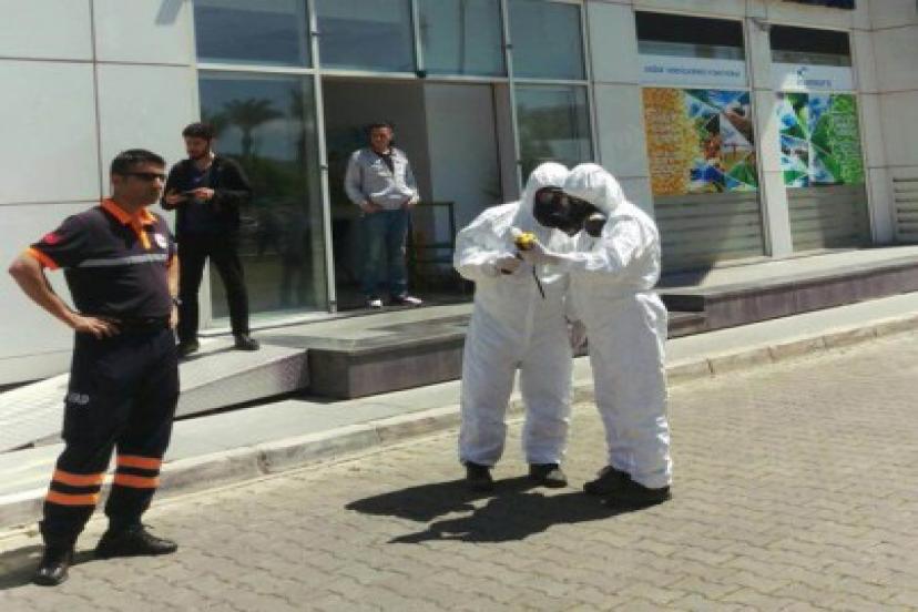 AK Parti'nin Bayraklı ilçesindeki il binasında büyük bir panik yaşandı. Binanın zemin katında bulunan kimya laboratarından klima yoluyla sızan gaz tüm binaya yayıldı.