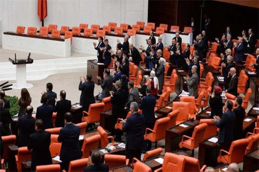 Meclis Başkanvekili Ahmet Aydın’ın Doğu ve Güneydoğu’da terör örgütüne yönelik yapılan operasyonlar nedeniyle bazı milletvekillerinin “Savaş, iç savaş, devlet terörü, katliam, Kürdistan soykırım” ifadelerinin kullanılmasına tepki göstermesini AK Parti’li ve MHP’li milletvekilleri ayakta alkışladı.
