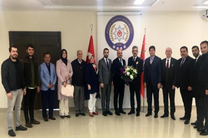 AK Parti Manisa İl Başkanı Berk Mersinli ve il yönetimi polis haftası dolayısıyla Manisa İl Emniyet Müdürü Fevzi Bilgiç’i makamında ziyaret etti.