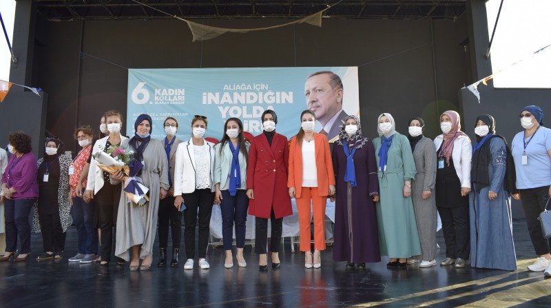 AK Parti İlçe Kadın Kolları kongresi Aliağa ile başlarken mevcut Başkan Şule Akman Yıldırım, yeniden başkanlığa seçildi. Kongrede konuşan İl Kadın Kolları Başkanı Dilek Yıldız Büyükdağ, ‘’Sayın Cumhurbaşkanımız Erdoğan öncülüğünde, milletimizden aldığımız güçle, sürekli kendimizi yenileyerek, geliştirerek inşallah ülkemize hizmet etmeye devam edeceğiz" dedi.