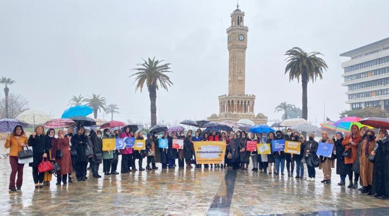 AK Parti İzmir Kadın Kolları Başkanlığı, Konak Meydanı’nda, Kadınlar Günü ile ilgili basın açıklaması yaptı. ‘’Bugün azimle, kararlılıkla, emeğiyle mücadele veren emekçi kadınların günü. 8 Mart vesilesiyle emekçi tüm kadınlara selam ediyorum.’’ diyen AK Parti Kadın Kolları Başkanı Dilek Yıldız Büyükdağ, ‘’Alın terinin, emeğin hakkını her daim koruyan bir medeniyetin mensubu olarak, kadınların alın terlerine saygılarımı sunuyorum. Bizim aslında 8 Mart’ta vereceğimiz en büyük mesaj: Büyük Türkiye hedefimizi kadın erkek omuz omuza gerçekleştireceğimizdir. Bu hayalimizi, beşeri sermayenin önemli bir parçası olan, fabrika işçisinden ev kadınlarına, beyaz yakalıdan mavi yakalıya, kırdan kente kadar tüm kadınların emeğiyle gerçekleştireceğiz. Kadın emeğini anmayı görev saydığımız bu günde Sayın Genel Başkanımız, Cumhurbaşkanımızın liderliğinde AK Parti olarak 2002’den bu yana hem temel insan hakları hem de beşeri sermayenin güçlendirilmesi perspektifi ile kadının eğitim, sağlık, istihdam, karar alma mekanizmalarına katılımı yönünde pek çok düzenleme yaptık. 2002’de Genel Başkanımız Sayın Recep Tayyip Erdoğan tarafında Hakkâri’de ilan edilen ilk seçim beyannamemizde kadına yönelik şiddetle ve kadın yoksulluğuyla mücadele edeceğimizi topluma beyan ettik. Her seçimde de buna yeni hedefler ekledik. Anayasadaki eşitlik ilkesi, Türk Ceza Kanunu’nda töre ve namus cinayeti cezalarının artırılması, İş Kanunu’nda eşit işe eşit ücret düzenlemesi, doğum izinleri başta olmak üzere, aile ve iş yaşamı uyumlaştırmasına ilişkin düzenlemeler, engelli çocuğu olan anneye 5 yıl erken emeklilik imkânı ve benzeri birçok düzenleme AK Parti döneminde yapılmıştır. Böylelikle eşitlik başta olmak üzere kadının güçlendirilmesi yasal güvence altına almıştır.’’ dedi.