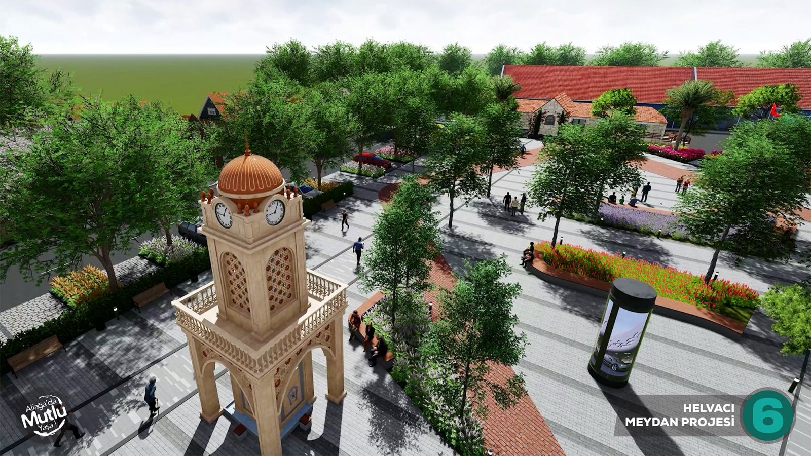 Aliağa Belediyesi, tarihi kervan yollarının üzerinde bulunan Helvacı Mahallesi için hazırladığı tarihi meydan projesinde çalışmalara başladı. Toplam 3.550 metrekare alana planlanan Tarihi Helvacı Kent Meydanı Projesinde meydana 580 metrekarelik yeni yeşil alan kazandırılacak. Helvacı’nın tarihine tanıklık eden eski muhtarlık ve belediye binası proje kapsamında Sağlık Ocağı olarak restore edildi. Modern, bir o kadar da Anadolu kültüründen izler taşıyacak Helvacı Meydanı, Osmanlı ve Selçuklu motifleriyle bezenmiş mimara sahip 10 metrelik 3 çeşmeli bir saat kulesi Helvacı Meydanı’nın simgelerinden olacak. Çeşitli bitki türleri ve ağaçlarla zenginleştirilecek alanda 27 araçlık otopark da bulunacak.
