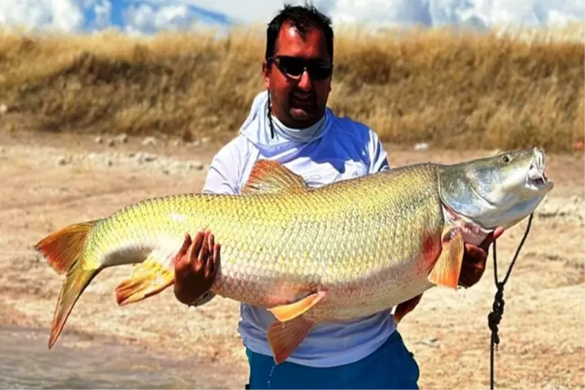 Amatör balıkçı baraj gölünde devasa balık yakaladı