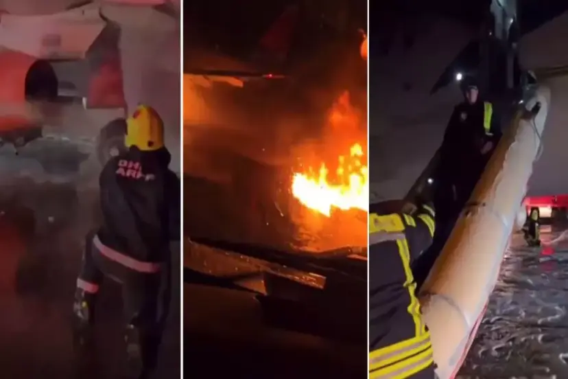 Yangın sırasındaki ilk anların görüntüleri ortaya çıktı. Alevli bir şekilde yanan uçağa ekiplerin müdahalesi ve yolcuların panik halinde uçaktan uzaklaşmaları görüntüler yansıdı.