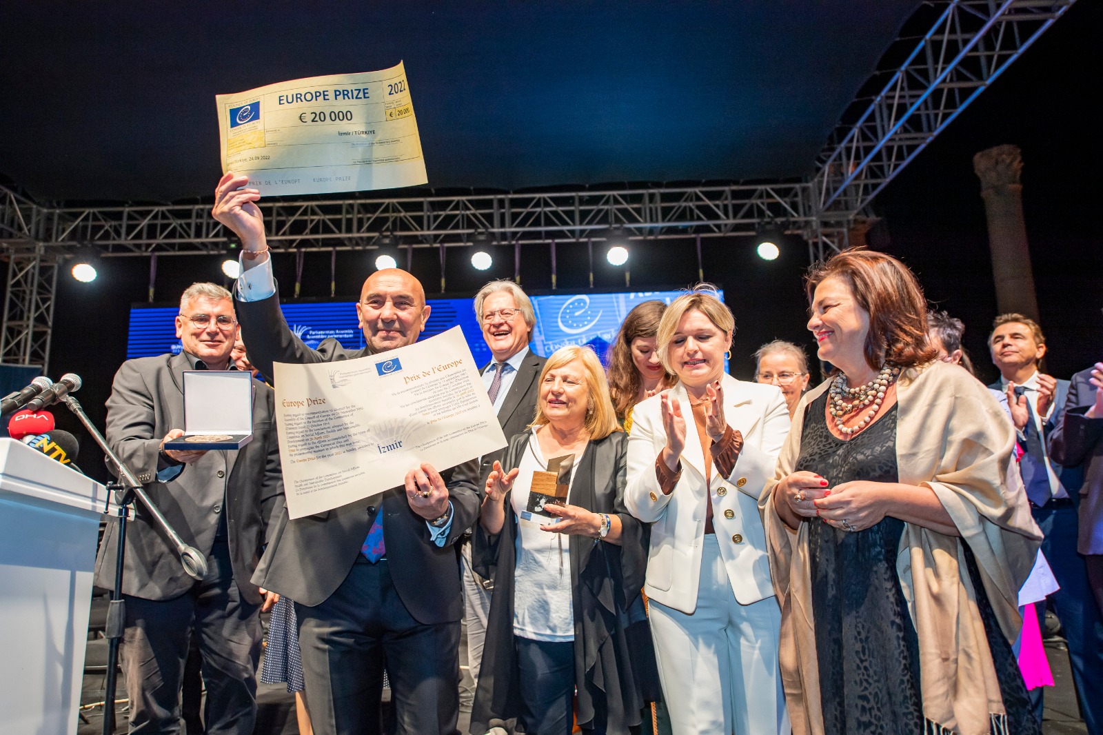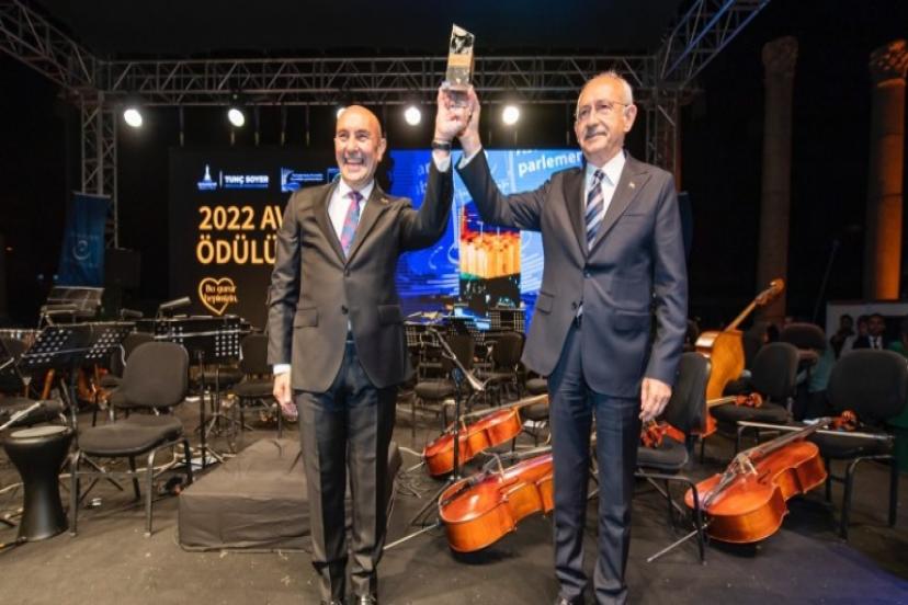 Avrupa Konseyi Parlamenterler Meclisi tarafından verilen Avrupa Ödülü’ne bu yıl İzmir layık görüldü. Smyrna Antik Agora’da düzenlenen ödül töreninde İzmir Büyükşehir Belediye Başkanı Tunç Soyer, “Bu ödülü yüreği çokluk içinde birlik için atan 4,5 milyon İzmirli adına alıyorum. Güzel İzmir’in güzel çocuklarına ve güzel gençlerine emanet ediyorum” diye konuştu. Gurur gecesine CHP Genel Başkanı Kemal Kılıçdaroğu da katıldı.