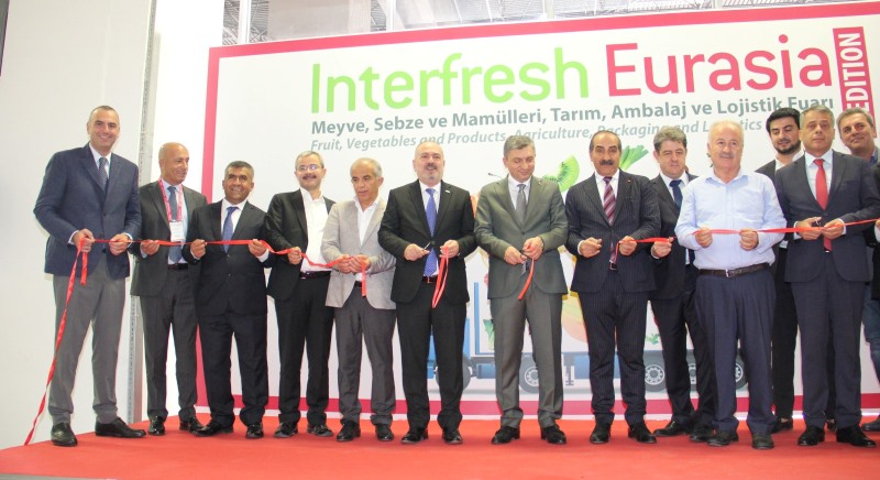 Interfresh Eurasia Fuarı’na yaş meyve sebze ihracatçı birlikleri ortak stantla katılırken, fuarın açılışına Antalya Valisi Hulusi Şahin, Kepez Kaymakamı Nusret Şahin, TAGEM Genel Müdürü Sayın Dr. Metin Türker, Ege Yaş Meyve Sebze İhracatçıları Birliği Başkanı Hayrettin Uçak, EYMSİB Yönetim Kurulu Üyesi Vural Güleç, Uludağ Yaş Meyve İhracatçıları Birliği Başkanı Senih Yazgan, Batı Akdeniz İhracatçı Birliği Başkanı Ümit Mirza Çavuşoğlu katıldı.