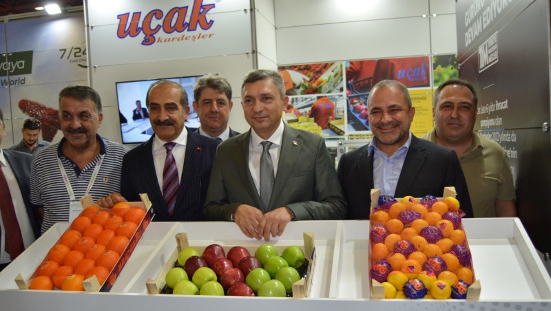 Yaş meyve sebze ihracatında en büyük pazarlar olan Avrupa Birliği ve Rusya Federasyonu’na ihracatın sürdürülebilir olması için kalıntısız ve kaliteli üretimin şart olduğunun altını çizen Uçak sözlerini şöyle sürdürdü; “55 milyon ton taze meyve sebze üretimimizden ihracatımızın aldığı pay yüzde 10 seviyelerinde. Hem bu oranı hem de fiyatlarımızı aynı anda artırmak için 2 temel şart var. Birincisi kalıntısız üretim. İkincisi ise kaliteli üretim. Hem Avrupa Birliği ve Rusya’da olan pazarımızı korumak için hem de ülkemize yeni pazar olanakları yaratmak için bu iki koşulu sağlamak için üreticiler, ihracatçılar, üniversitelerimiz, bakanlıklarımız olarak topyekün mücadele etmemiz gerekiyor. Hem Ege Bölgesinde hem de Akdeniz bölgesinde üreticilerimize kimyasal mücadele yerine biyoteknik mücadele için tuzaklar dağıtıyoruz. Bahçelerden numuneler alıp analiz ettiriyoruz, üreticilerimizle devamlı temas halindeyiz. Bu fuarların faydasını daha çok görmemiz için özellikle kalıntı sorununu kökünden çözmemiz gerekiyor.”