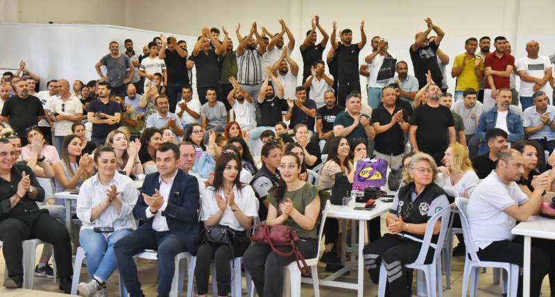 Menemen Belediyesi emekçileri Başkan Pehlivan’ın konuşmasını uzun süre alkış tutarak teşekkür etti.