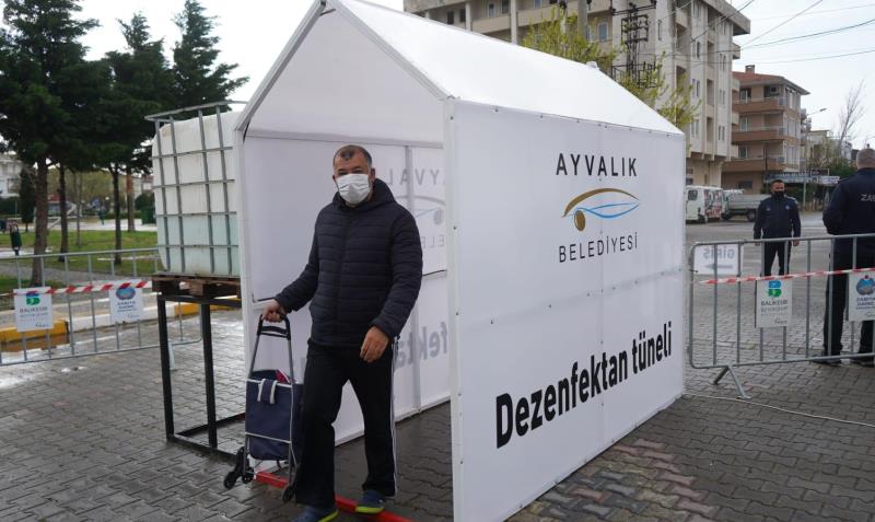 Dezenfektan Tünelini satın alarak kullanmaya başlamak isteyen Ayvalık Belediyesi rakamların  piyasada yüksek olduğunu öğrenince , Ayvalık Belediye Başkanı Mesut Ergin'in "biz kendimiz de yapabiliriz" demesi üzerine , Ayvalık Belediyesi çalışanları tarafından bir gece içerisinde projelendirildi ve iki gün içerisinde imalatı tamamlanarak kullanılmaya başlandı.Püskürtmeye ve cilde uygun dezenfeksiyon sıvısı kullanılarak çalışan tünelin maliyeti piyasa değerinin yaklaşık 20/100 üne mal oldu.