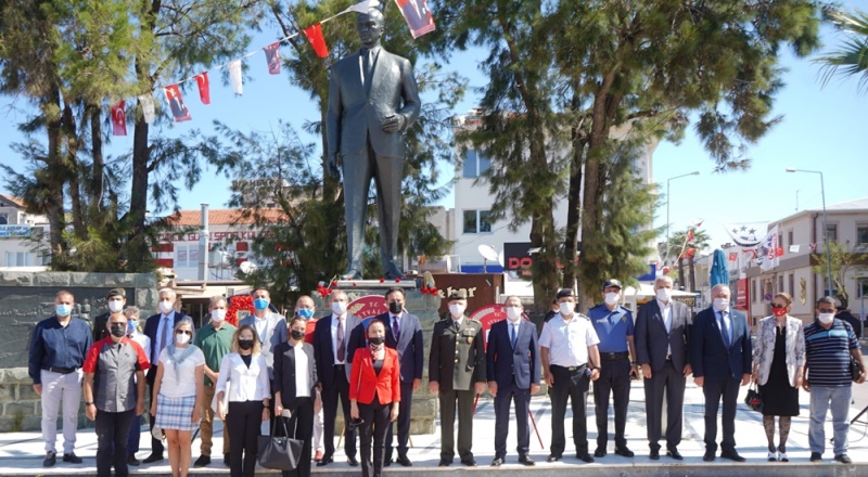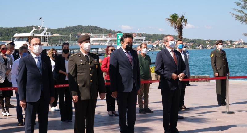 Ayvalık Kaymakamı Gökhan Görgülüarslan’ın yanı sıra, Ayvalık Belediye Başkanı Mesut Ergin, Garnizon Komutanı Pers. Albay Ertan Tutar, Cumhuriyet Başsavcısı Kürşat Albayrak, daire amirleri, siyasi parti ve sivil toplum kuruluşlarının temsilcileri, gaziler, şehit aileleri ve vatandaşların hazır bulunduğu törende; Ayvalık Kaymakamlığı, Garnizon Komutanlığı ve Belediye Başkanlığı çelenklerinin Atatürk anıtına sunumu gerçekleştirildi.