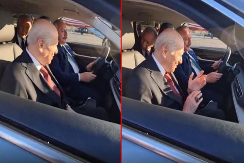 Bahçeli, araca bindikten sonra dua ederken daha sonra aracı yakından inceledi. Bahçeli'nin dua ettiği görüntüler sosyal medyada yayınlandı.