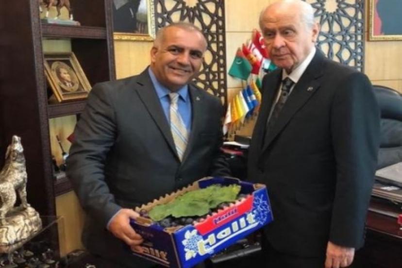 Milliyetçi Hareket Partisi Karabağlar İlçe Teşkilatı Genel Başkan Bahçeliye Kavacık Üzümü ikram etti. Geçtiğimiz günlerde MHP Karabağlar ilçe başkanı İbrahim Uğur ve ilçe teşkilat yöneticileri Genel Başkan Bahçeli’yi ziyaret etti. Ziyarette Genel Başkan Bahçeli’ye İzmir’in dünyaca ünlü Kavacık Üzümü ikram edildi.