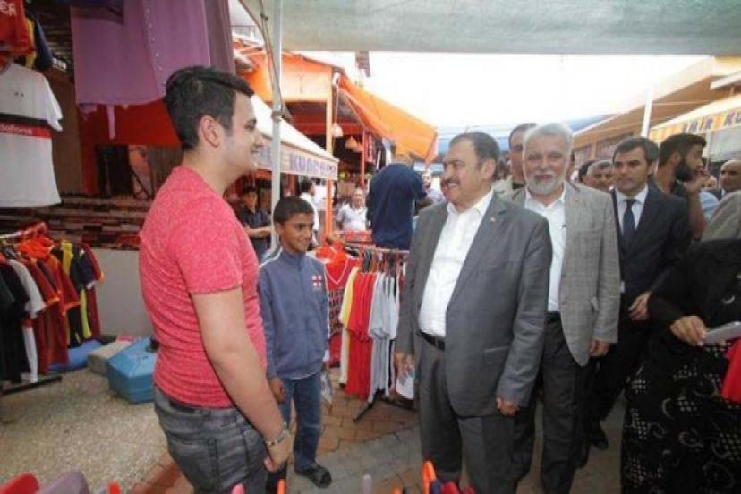 Karabağlar ilçesini daha öncede ziyaret etiğini söyleyen Prof. Dr. Veysel Eroğlu, ilçe için yapılması gereken ne varsa bunu büyük bir memnuniyetle yapacaklarını ifade etti. İzmir için çok büyük düşündüklerini ve bu maksatla İzmir Başbakanlık Ofisi’ni hizmete açtıklarını belirtti. Bakan Prof. Dr. Eroğlu açıklamalarını şöyle sürdürdü; “İzmir’de çok büyük bir potansiyel var biz bunu harekete geçireceğiz ve İzmir’i şaha kaldıracağız. İzmir’e ne zaman ne yapacağız bunun plan ve projeleri hazır. Biz vaatte bulunurken kuru lafla yapmıyoruz bunun haritasını projesini kitabını her şeyini hazırlıyoruz. AK Parti hükümetleri olarak İzmir’e şu ana kadar 30 milyar TL’den fazla yatırım yaptık bundan sonra da İzmir’e güzel hizmetler yapacağız bunun sözünü veriyoruz sözümüz söz. Biz ne dediysek yaptık sözümüzün eriyiz. İzmir’i kültürde, turizmde, sanatta, sağlıkta, sporda ve diğer alanlarda lider şehir yapağız”. Seçim ofisinin ardından Ordu Caddesi esnafını ziyaret eden Bakan Prof. Dr. Veysel Eroğlu esnaflara da İzmir’e yaptıkları yatırımlar hakkında bilgi vererek hayırlı ve bol kazançlı günler diledi. Prof. Dr. Veysel Eroğlu Ordu Caddesi’nin ardından seçim otobüsüyle halkı selamlayarak Balçova’ya geçti. Balçovadaki bazı alışveriş merkezlerini ziyaret eden Orman ve Su İşlei Bakanı Prof. Dr. Veysel Eroğlu bayanlara gül dağıttı.