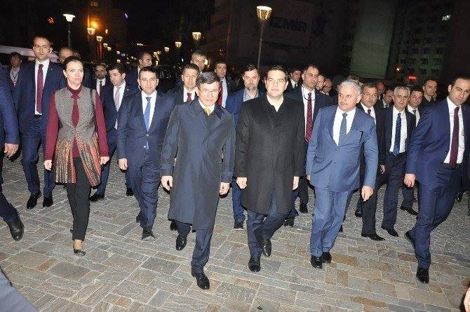 Başbakan Ahmet Davutoğlu Başbakanlık Ofisi’nde Yunanistan Başbakanı Aleksis Çipras’la yaklaşık 6 saat süren 4. Yüksek Düzeyli İşbirliği Konseyi toplantısı ve hemen ardından gerçekleşen basın toplantısının ardından İzmir’de partililerle buluştu.