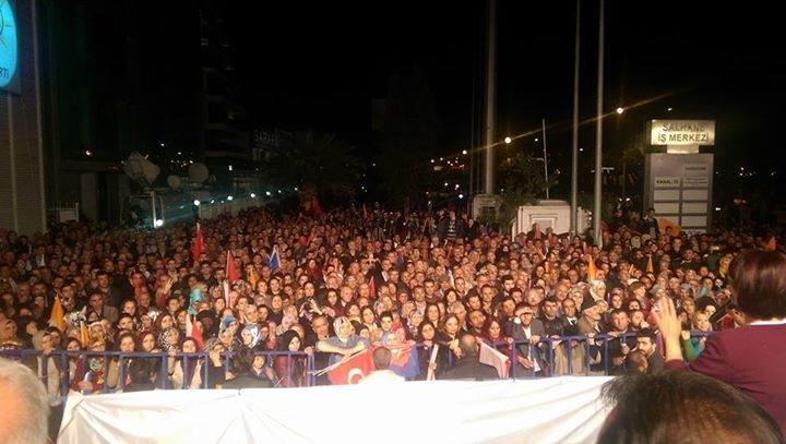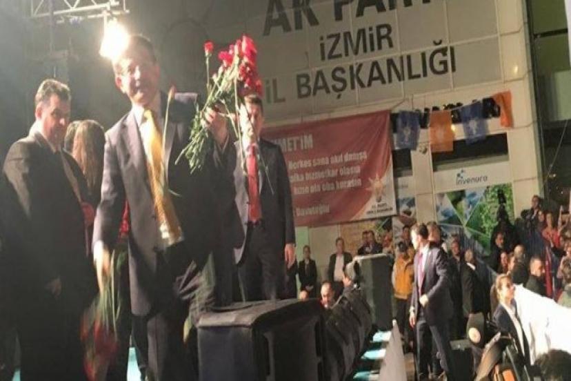 Başbakan Davutoğlu İl Teşkilatı tarafından organize edilen mini mitingde Bayraklı’daki İl Binası önünde vatandaşlara seslendi. Davutoğlu’nun konuşması sırasında bakanlar, başbakan yardımcıları, milletvekilleri ve il yöneticileri de hazır bulundu.