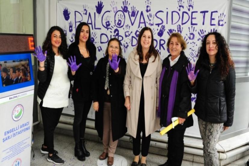 Tüm dünyada 25 Kasım tarihinde çeşitli etkinlikler ve farkındalık eylemleri yapılan Kadına Yönelik Şiddete Karşı Uluslararası Mücadele Gününde Balçovalı Kadınlar da şiddete dur dedi. Balçova Belediyesi ve Yaşar Üniversitesi Kadın ve Aile Çalışmaları Uygulama ve Araştırma Merkezi tarafından ortaklaşa organize edilen eylem Balçova Belediyesi önünde gerçekleştirildi. Balçovalı Kadınların yoğun ilgi gösterdiği eylemde ilk olarak kadına karşı şiddet eylemleri hakkında bilgi verilmesi ve şiddete karşı toplumun tüm kesimleri tarafından alınması gereken önlemlerin anlatıldı. Eyleme katılan kadınlar Başkan Fatma Çalkaya ve YÜKAM Müdürü Prof.Dr. Huriye Toker ile birlikte hazırlanan panoya boyalı ellerini basarak Şiddete Karşı mesaj verdi.