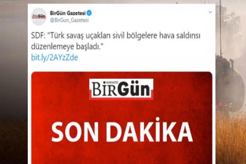 Türkiye'nin operasyonunu karalamak isteyen Birgün gazetesi, terör sözcülüğüne soyunarak bu yalanları okuyucularına servis etti.