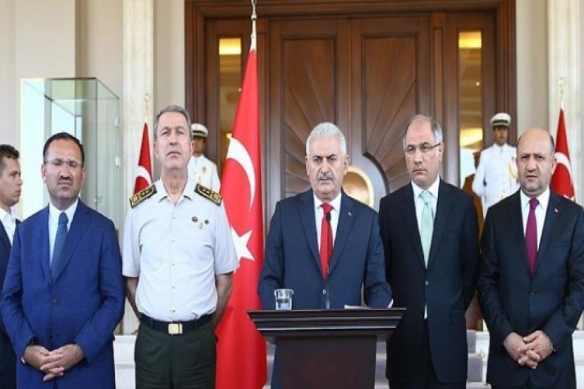 İşin birinci safhası burada sona ermiştir. Bundan sonra bir yandan vatandaşlarımız normal hayatlarını sürdürürken ülkemizi itibarsızlaştırmaya çalışan güruhlar karşısında her türlü işlem yapılacaktır. Demokrasi bayramımız 15 Temmuz milletimize hayırlı olsun. Parti başkanlarının bu olayda gösterdiği üstün dayanışmadan ötürü teşekkür ediyorum. Bugün saat 15:00'da yüce meclis toplanacak ve bu olay tüm ayrıntıları ile ele alınacak.