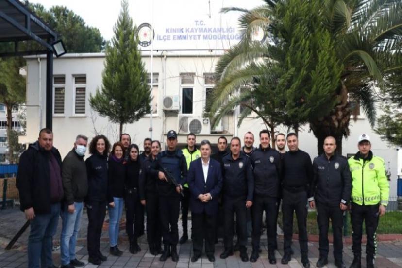 Kınık Belediye Başkanı Dr. Sadık Doğruer, yeni yıla görev başında girecek olan sağlık çalışanlarını, genel kolluk kuvvetlerini ve ilçede nöbet tutan kurumları ziyarette bulunarak yeni yıllarını kutladı.