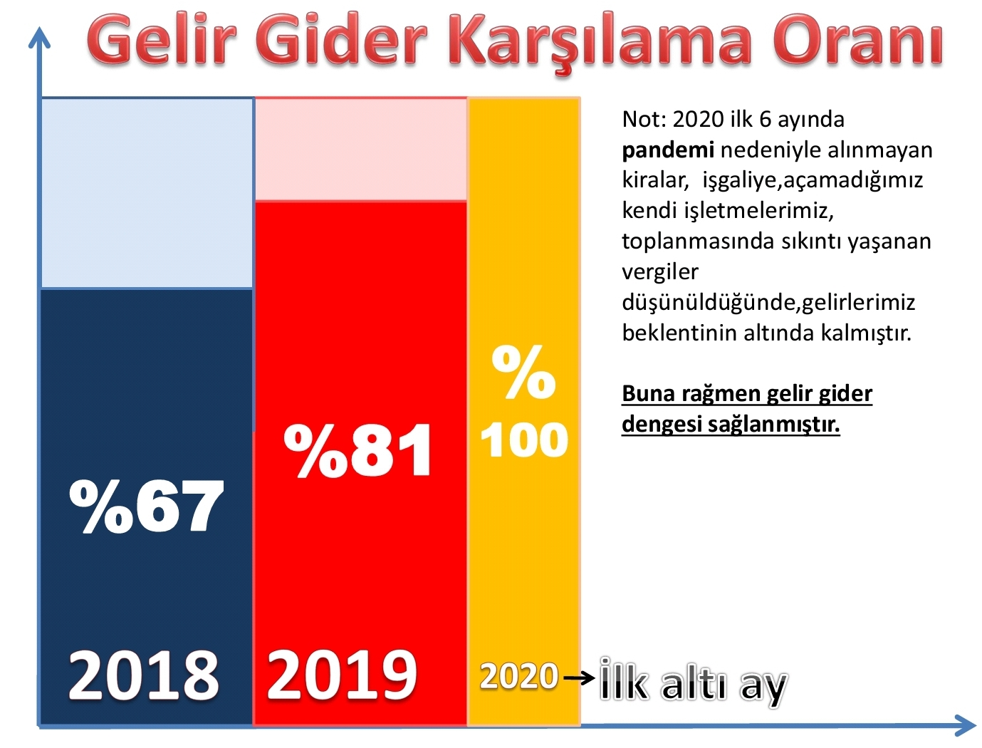 Başkan Ergin, “2020 yılının ilk altı ayında pandemi nedeniyle alınamayan kira, işgaliye, açamadığımız kendi işletmelerimiz, toplanmasında sıkıntı yaşanan vergiler düşünüldüğünde gelirlerimiz beklentilerimizin altında kaldı. Tüm bunlara karşın, Belediyenin yüz binlerce liralık icralık dosyasını kapatıp bir ödeme planına bağladık. Aralarında yedi sekiz yıldır bekleyen 88 emeklimizin kıdem tazminatlarını ödedik. Gelirlerimizi artırdık ama asıl önemlisi giderlerimizi azalttık. Bu vesile ile düzenlenmiş ödeme planları ve gelir gider dengesindeki iyileştirmelerle artık daha huzurlu bir şekilde önümüzü görüyoruz. Seçim öncesi ve sonrasında çözülmesi gereken en büyük sorunun mali disiplin olduğunu söylemiştik. Sözümüzün arkasında duruyoruz. İlk yılın önemli bir bölümünde bütün iş yapma imkanlarını kısıtlayan mali disiplin konusunda önemli ölçüde yol aldık”diye konuştu.