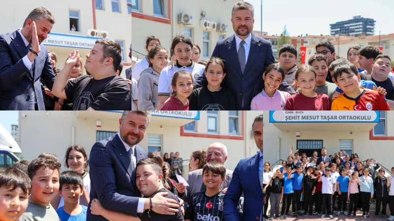 Şehit Mesut Taşar Ortaokulu'nu ziyaret eden Buca Belediye Başkanı Mimar Görkem Duman, öğrencilerin sevgi seliyle karşılandı. Başkan Görkem Duman, “Sizlerin yüzünde bir tebessüm oluşturmak, yarınlarınıza güvenle bakmanızı sağlamak bizim en büyük sorumluluğumuz” dedi.