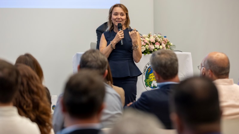 Konak Belediye Başkanı Nilüfer Çınarlı Mutlu, İzmir Ticaret Borsası’nın (İTB) eylül ayı olağan meclis toplantısına kentin kadın belediye başkanları ile birlikte konuk oldu. İTB Başkanı Işınsu Kestelli’nin ev sahipliğinde gerçekleştirilen toplantıda, Akademisyen Soli Özel’in dünya gündemine ilişkin değerlendirmelerinin ardından kadın belediye başkanları da kürsüye çıkarak sunumlar yaptı. Belediyecilik vizyonu ve hizmetleri anlatan sunumunda göreve geldiği günden bu yana mazeret üretmeden çalıştıklarını belirten Başkan Mutlu, barınma hakkının önemine vurgu yaparak öncelikli gündemlerinin kentsel dönüşüm çalışmaları olduğunun altını çizdi.