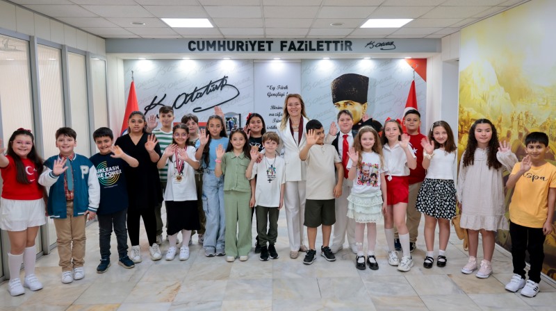 Konak Belediye Başkanı Nilüfer Çınarlı Mutlu, 23 Nisan Ulusal Egemenlik ve Çocuk Bayramı nedeniyle makamında ağırladığı çocuklara koltuğunu devretti. Makam koltuğuna oturan çocuklar, kütüphanelerden spor alanlarına, temiz bir çevreden yeni park alanlarına, hayvan haklarının korunmasından yeşil alanlara kadar gerçekleşmesini istedikleri taleplerini Başkan Mutlu’ya ilettiler. Bir kız öğrencinin “Dünyada barış olmasını isterdim” dileği ise büyük alkış aldı. Keyifli bir sohbet ortamında gerçekleşen programda Başkan Mutlu, çeşitli hediyeler sunduğu çocuklara daha güzel bir gelecek bırakabilmek için çok çalışacaklarının sözünü verdi ve bayramlarını kutladı.