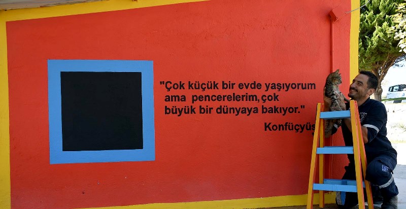 Öte yandan merkezde, Kuşadası Belediyesi Park ve Bahçeler Müdürlüğü ekipleri tarafından başta çocuklar olmak üzere hayvan sever kent sakinlerinin rehabilite edilen kedi ve köpeklerle daha keyifli bir ortamda vakit geçirmesine olanak sağlayacak şekilde çevre ve peyzaj düzenlemesi gerçekleştirildi. Hayvanların kaldığı padok, merkez binası ve kedi tedavi ünitesinin duvarları ise Kuşadası Belediyesi bünyesinde çalışmalarını sürdüren restoratör ve konservatör Venüs Şahin ile Çağla Cansın Karaman tarafından farklı renklere boyandı. Çeşitli desen ve ilistürasyonlarla daha da renklendirilen Kuşadası Evcil Hayvan Rehabilitasyon Merkezi’nin duvarlarında şiir dizeleri ve sözlere de yer verildi.