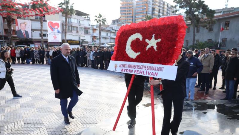 Menemen Belediye Başkanı Aydın Pehlivan, hafta sonu Cumhurbaşkanı Recep Tayyip Erdoğan tarafından adaylığının açıklanmasının ardından yeni haftaya baba ocağında hayır duası alarak başladı. İkinci durağı Cumhuriyet Meydanı olan Başkan Pehlivan, burada Atatürk Anıtı’na çelenk koydu.
